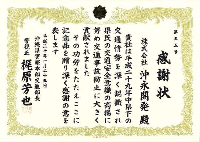 沖縄警察署長・沖縄地区交通安全協会会長 |