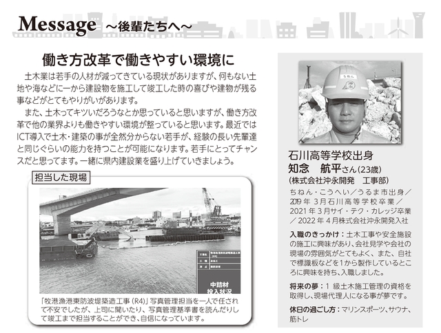 ~工事部社員の記事が沖建協会報5月号へ掲載されました~