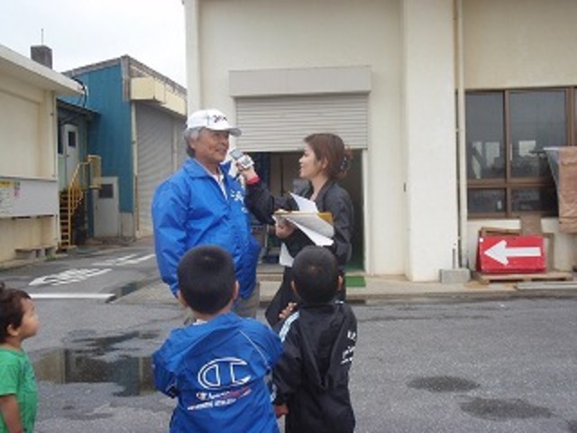 ROK(ラジオ沖縄)の伊江島出身で有名な渡久地明菜さん、【アッキーナ】レポーターから、弊社安里社長がボランティアの取組についてインタビューを受けました。
