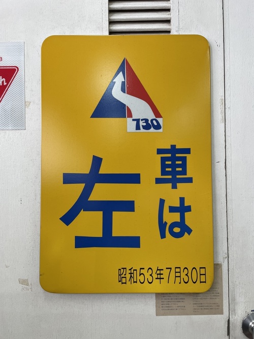 1978年(昭和53年)7月30日・・・沖縄県では交通ルールが大きく変わる「730の日」を迎えました。それまで右側通行だった道路が、この日を境に左側通行へと変更されることになったのです。当社は以前から標識工事に携わっており、この大規模な通行変更に向けて、工事部内に交通安全施設の専任スタッフを編成。7月29日夜から30日朝まで、沖縄県全域で自動車の通行が一時禁止される中、標識の付け替えや信号機の切り替えなどの作業が、わずか8時間という短時間で行われました。沖縄が日本へ復帰してから6年後・・・本土との交通ルールを統一するという歴史的プロジェクトに立ち会えたことは、私たちにとって大きな誇りです。(写真:当社で制作された「沖縄730」当時の標識。)
