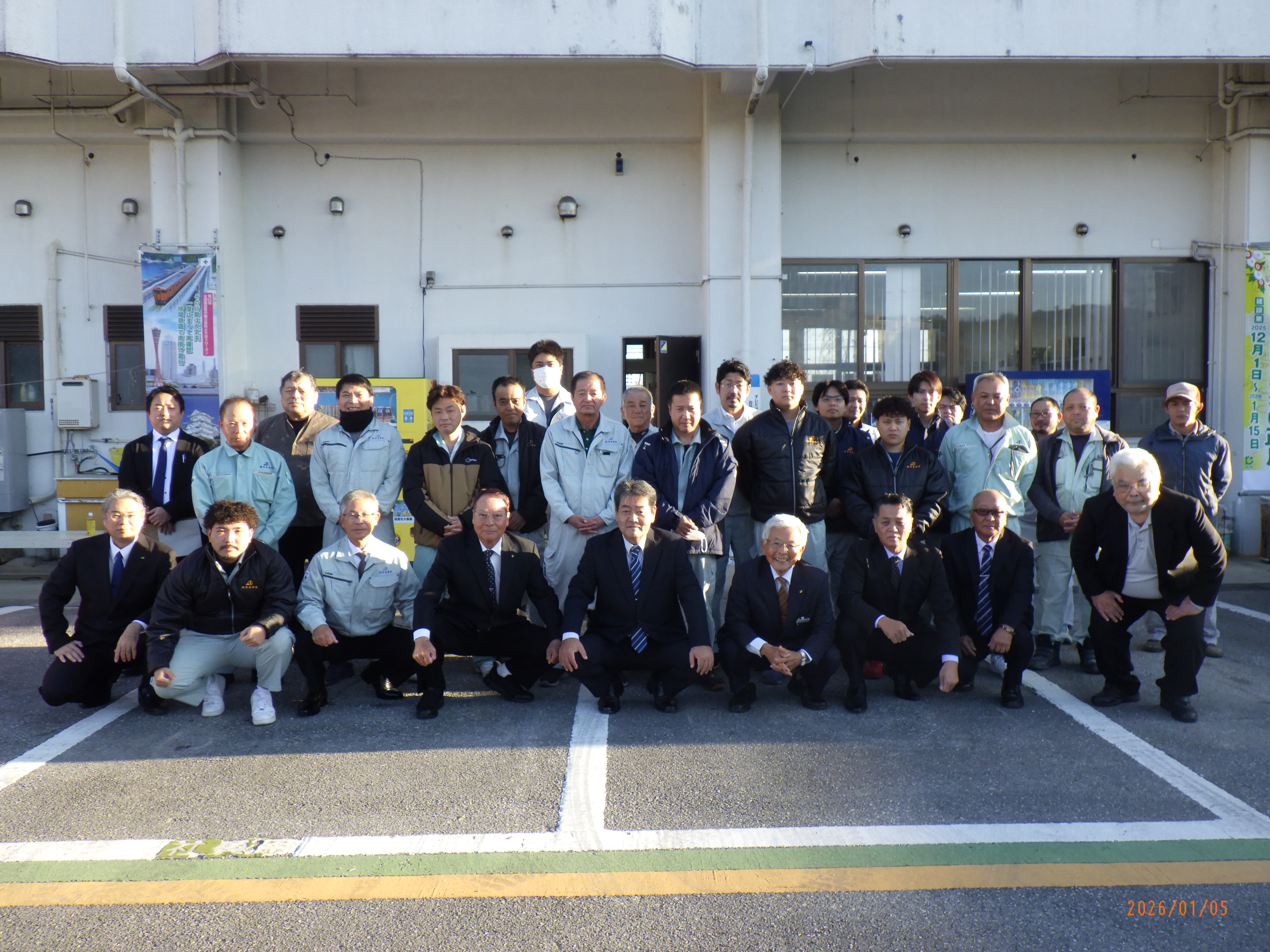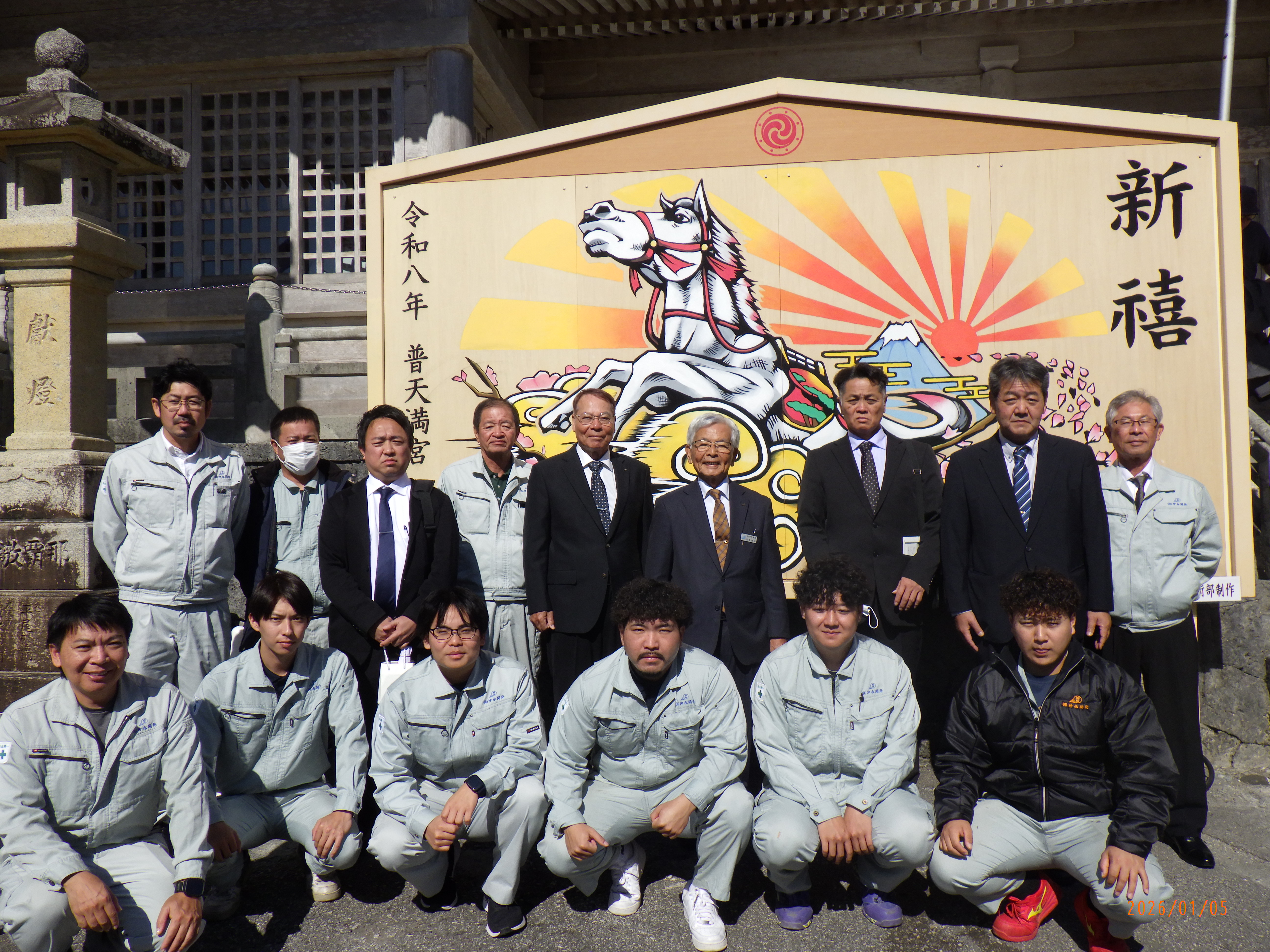 2026年の今年は午年(うまどし)。勢いよく駆け抜ける力、迷わず前へ進む勇気、そして大きく跳ね上がる“飛躍”を象徴する一年です。昔から『午年は勝負の年』『動けば道が開ける年』とも言われ、まさに挑戦にふさわしいスタートとなりました。令和8年1月5日、晴れ渡る空の下、事業本部にて年始式を執り行い、その後普天間神宮にて代表者による年頭祈願を実施しました。社員一同が新たな決意を胸に、一年の安全と発展を祈念しました。 令和8年年始式(事業本部にて) 年頭祈願(普天間神宮にて)