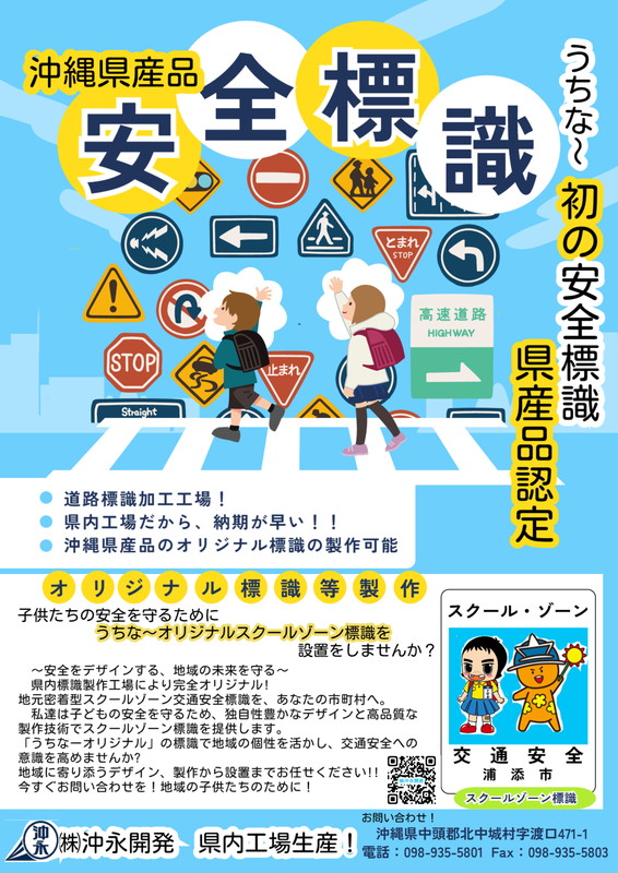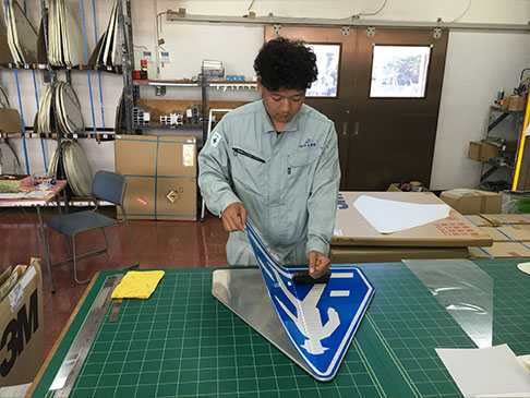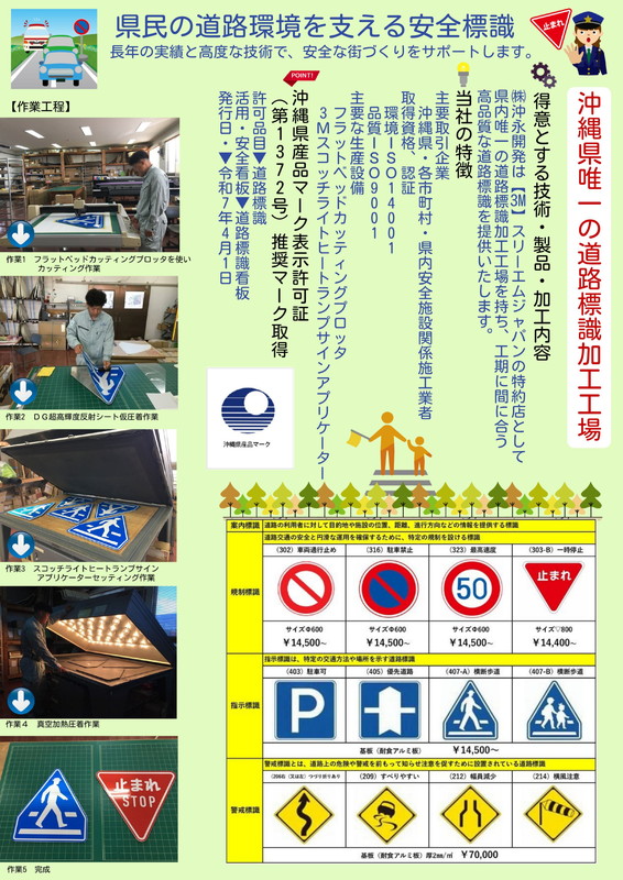 沖永開発は、住友スリーエムの特約店として県内唯一の道路標識加工工場を持ち、業界の信頼を得ています。